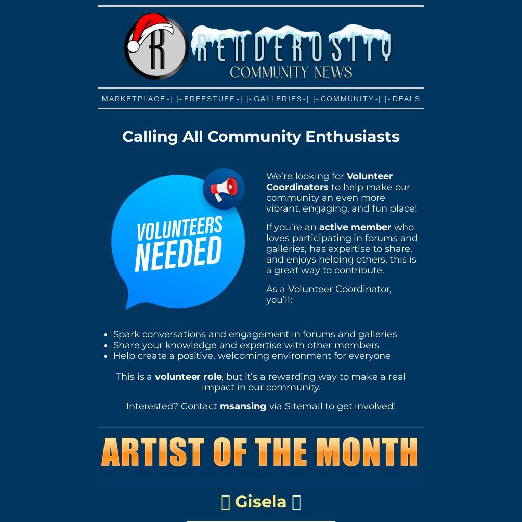 As we wrap up 2025, we want to thank our amazing community for making Renderosity such a creative and welcoming place. Your art, ideas, and energy bring our forums and galleries to life every day!