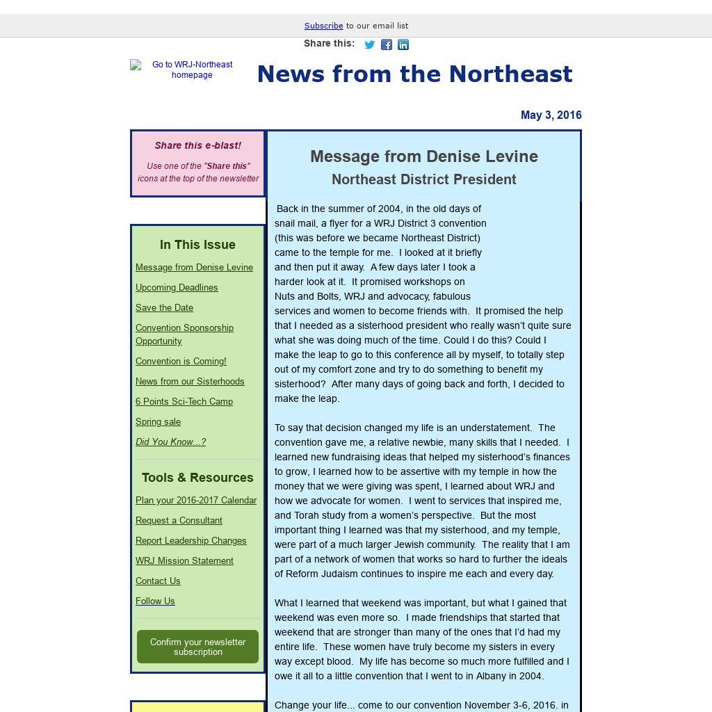 Using Gmail's Tab Layout? Drag this message to your Primary inbox so you won't miss any e‑blasts from WRJ Northeast District
