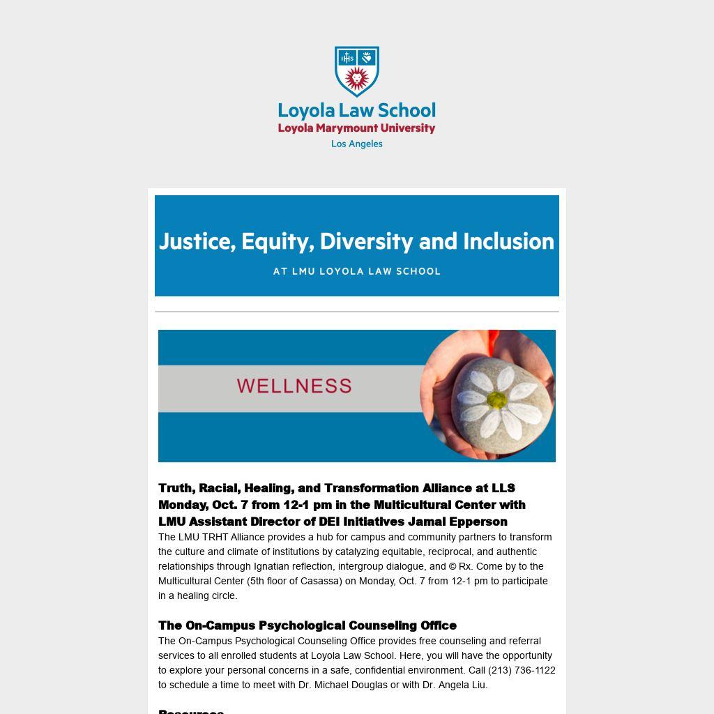 The LMU TRHT Alliance provides a hub for campus and community partners to transform the culture and climate of institutions by catalyzing equitable, reciprocal, and authentic relationships through Ignatian reflection, intergroup dialogue, and © Rx. Come by to the Multicultural Center (5th floor of Casassa) on Monday, Oct. 7 from 12-1 pm to participate in a healing circle.