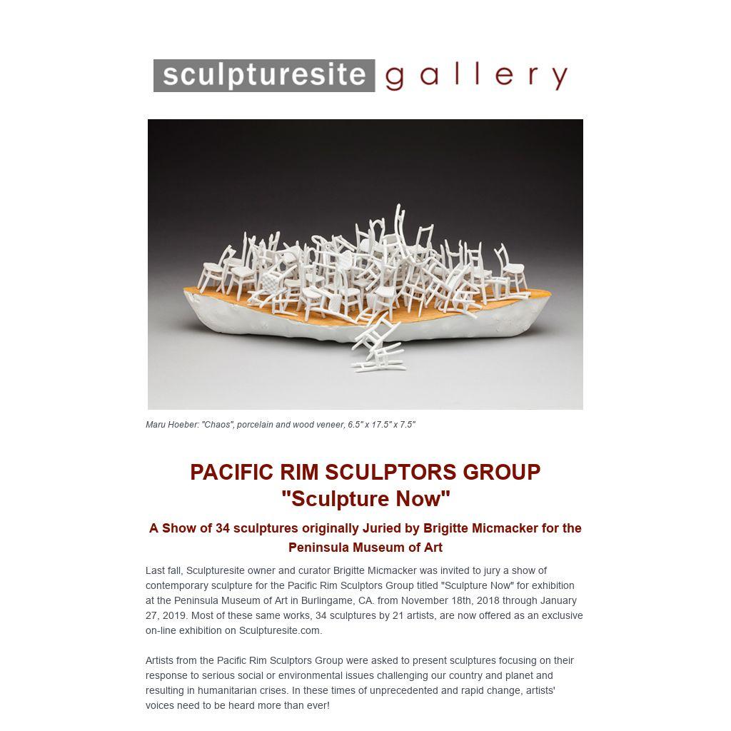 Last fall, Sculpturesite owner and curator Brigitte Micmacker was invited to jury a show of contemporary sculpture for the Pacific Rim Sculptors Group titled "Sculpture Now" for exhibition at the Peninsula Museum of Art in Burlingame, CA. from November 18th, 2018 through January 27, 2019. Most of these same works, 34 sculptures by 21 artists, are now offered as an exclusive on-line exhibition on Sculpturesite.com.