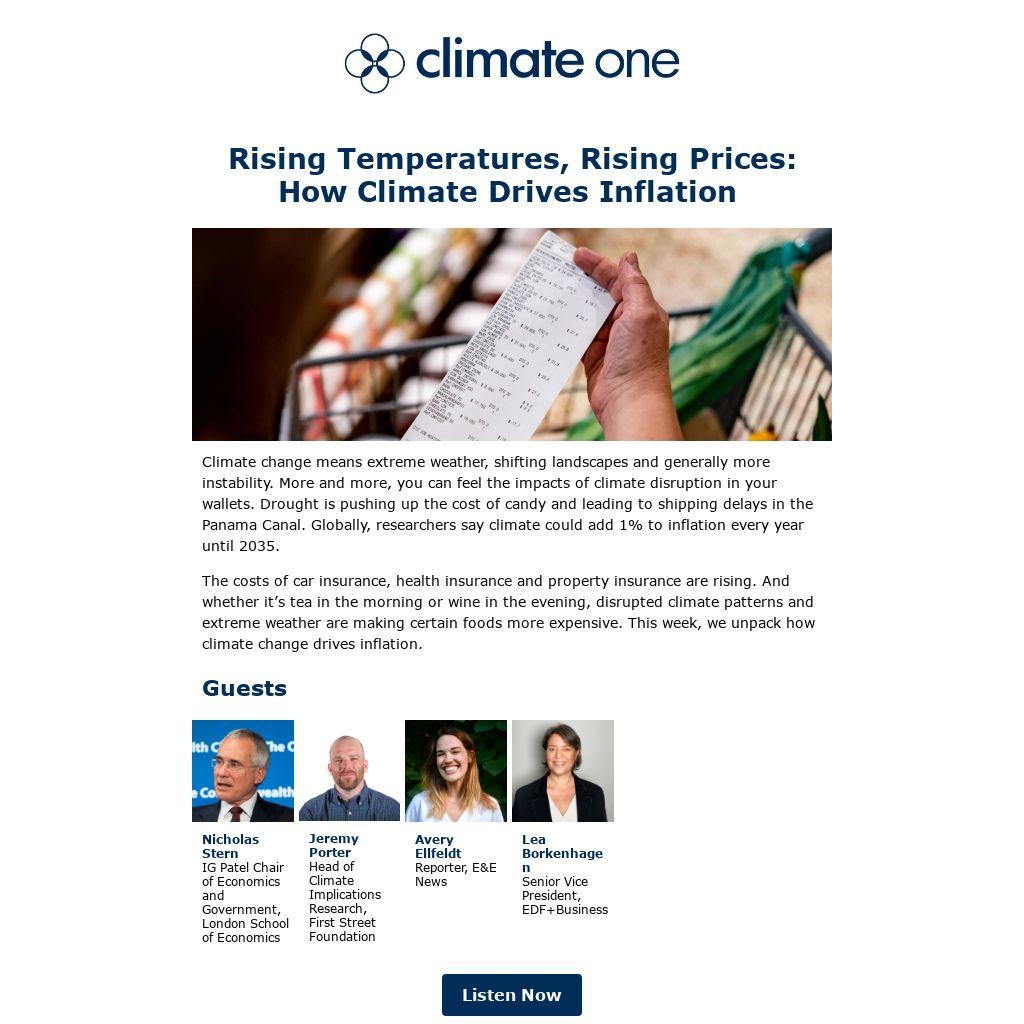 The costs of car insurance, health insurance and property insurance are rising. And whether it’s tea in the morning or wine in the evening, disrupted climate patterns and extreme weather are making certain foods more expensive. This week, we unpack how climate change drives inflation.