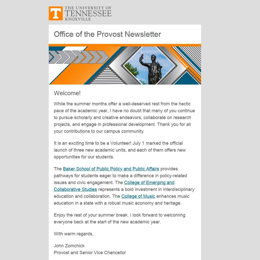 It is an exciting time to be a Volunteer! July 1 marked the official launch of three new academic units, and each of them offers new opportunities for our students.