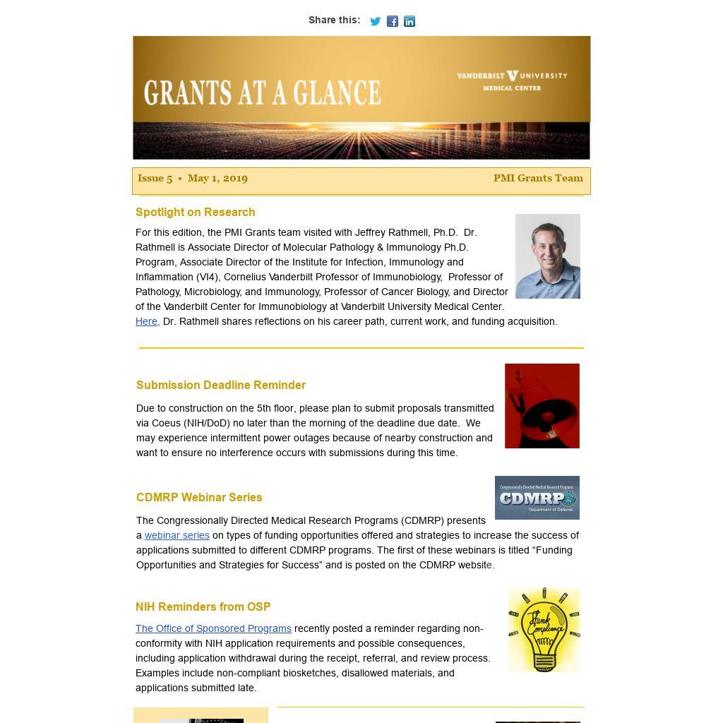 | Spotlight on Research For this edition, the PMI Grants team visited with Jeffrey Rathmell, Ph.D. Dr. Rathmell is Associate Director of Molecular Pathology & Immunology Ph.D. Program, Associate Director of the Institute for Infection, Immunology and Inflammation (VI4), Cornelius Vanderbilt Professor of Immunobiology, Professor of Pathology, Microbiology, and Immunology, Professor of Cancer Biology, and Director of the Vanderbilt Center for Immunobiology at Vanderbilt University Medical Center. Here, Dr. Rathmell shares reflections on his career path, current work, and funding acquisition.