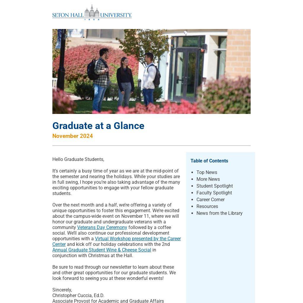 It’s certainly a busy time of year as we are at the mid-point of the semester and nearing the holidays. While your studies are in full swing, I hope you’re also taking advantage of the many exciting opportunities to engage with your fellow graduate students.