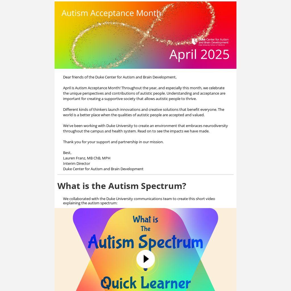 We collaborated with the Duke University communications team to create this short video explaining the autism spectrum: