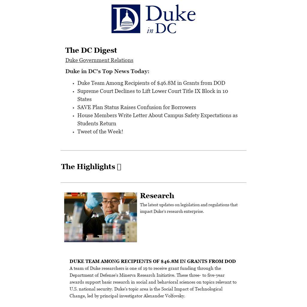 DUKE TEAM AMONG RECIPIENTS OF $46.8M IN GRANTS FROM DOD