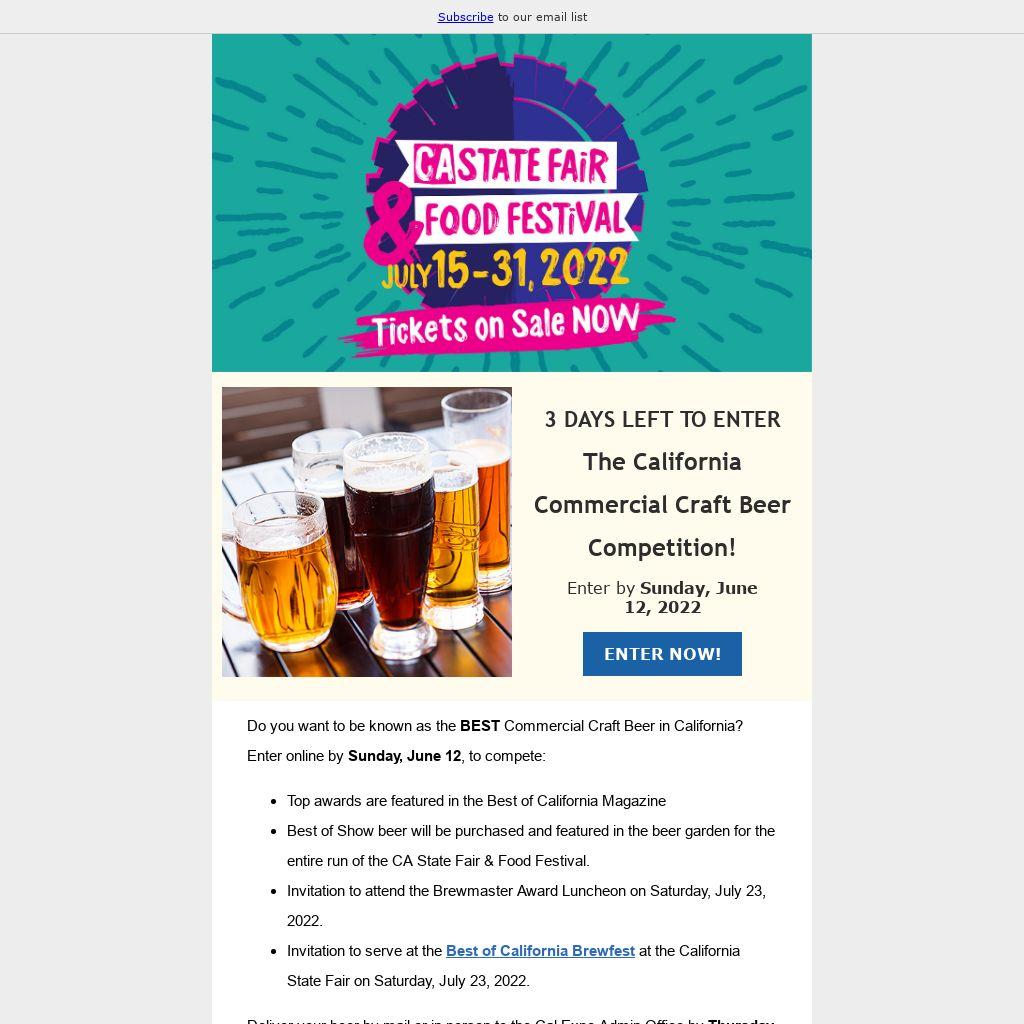 Invitation to serve at the Best of California Brewfest at the California State Fair on Saturday, July 23, 2022.