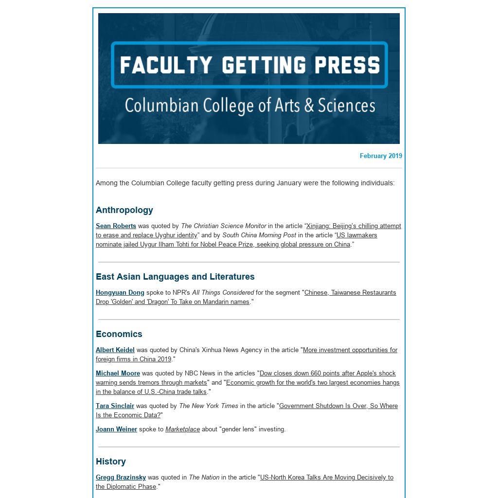 Columbian College of Arts and Sciences 801 22nd St. NW