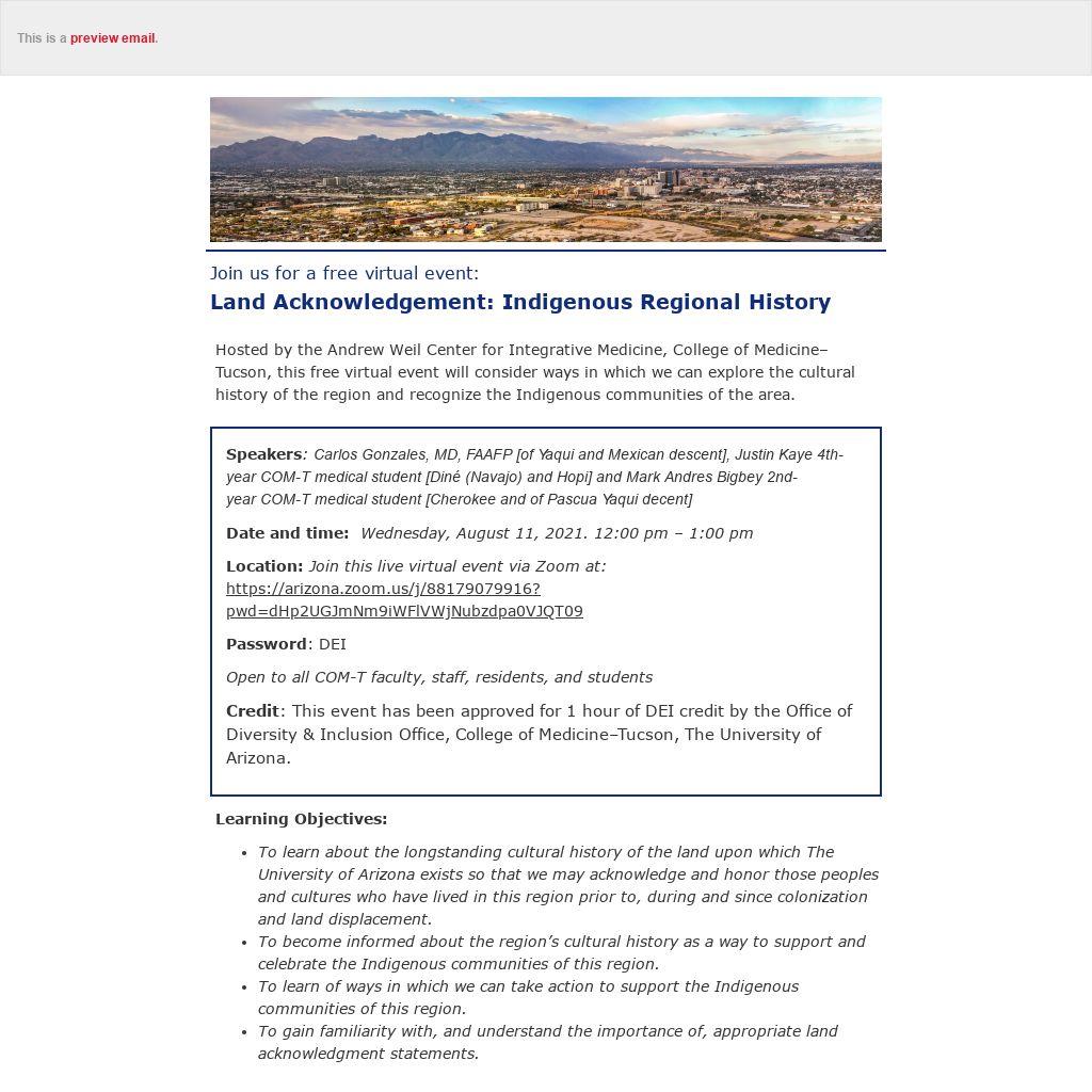Credit: This event has been approved for 1 hour of DEI credit by the Office of Diversity & Inclusion Office, College of Medicine–Tucson, The University of Arizona.