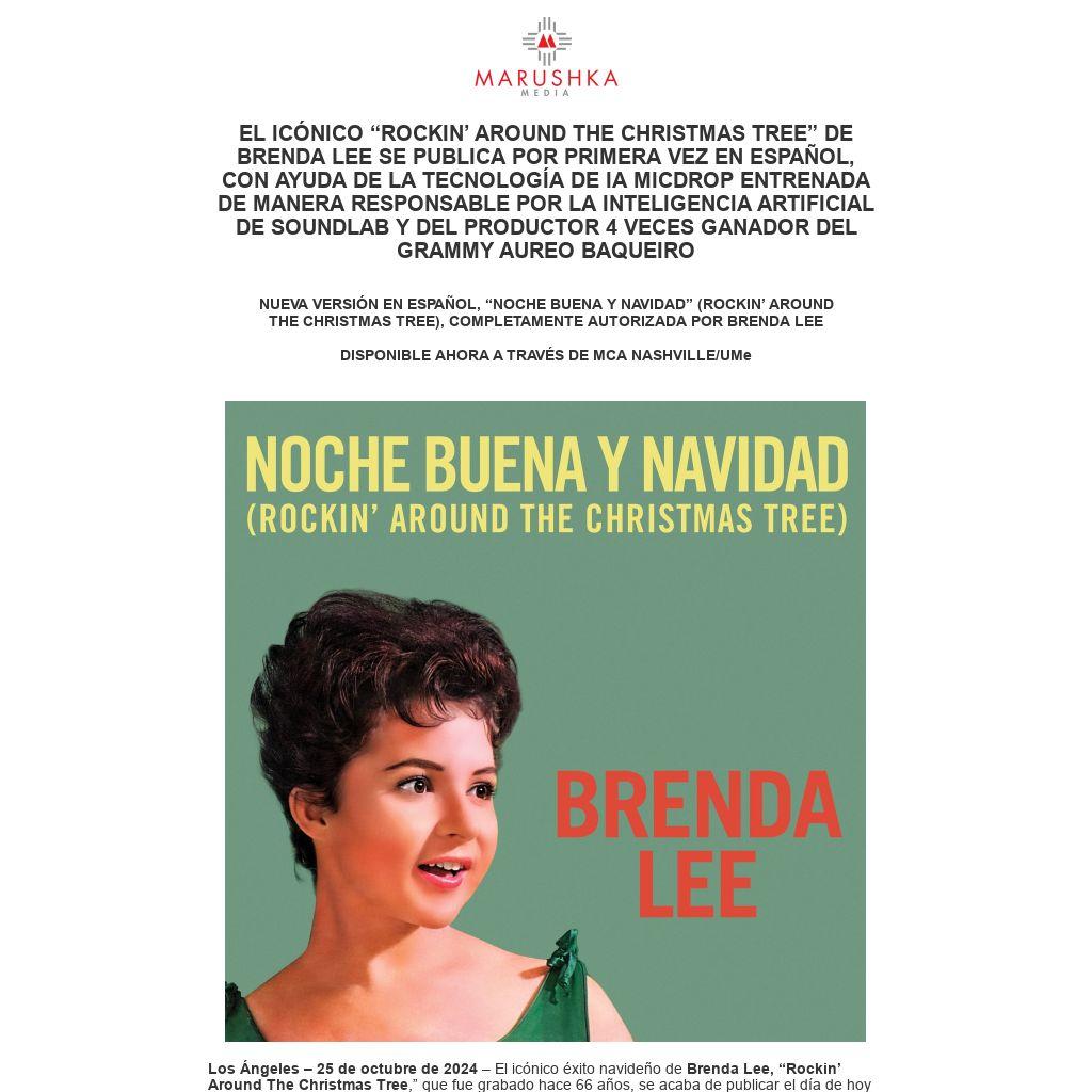 “Estoy tan sorprendida por esta nueva versión en español de ‘Rockin’ Around The Christmas Tree’ creada con la ayuda de la IA," menciona Brenda Lee. “A través de mi carrera, he cantado y grabado muchas canciones en distintos idiomas, pero nunca grabé ‘Rockin’ en español, que es algo que me hubiera encantado hacer. Poder publicar esto ahora es bastante increíble y estoy muy feliz de presentarle la canción a los fans de una nueva manera.”