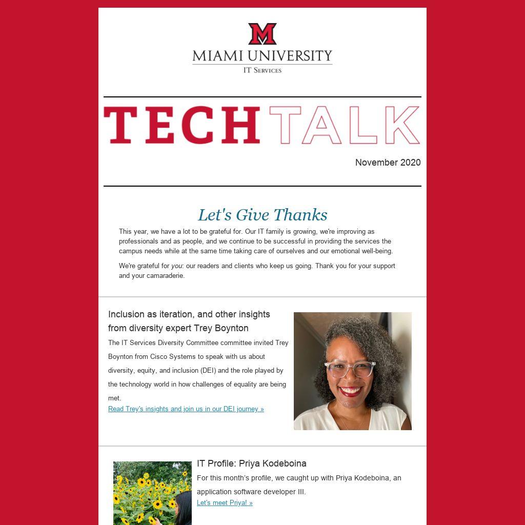 This year, we have a lot to be grateful for. Our IT family is growing, we're improving as professionals and as people, and we continue to be successful in providing the services the campus needs while at the same time taking care of ourselves and our emotional well-being.