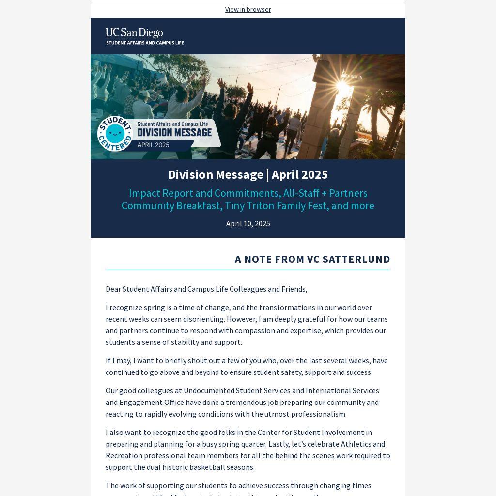 Impact Report and Commitments, All-Staff + Partners Community Breakfast, Tiny Triton Family Fest, and more