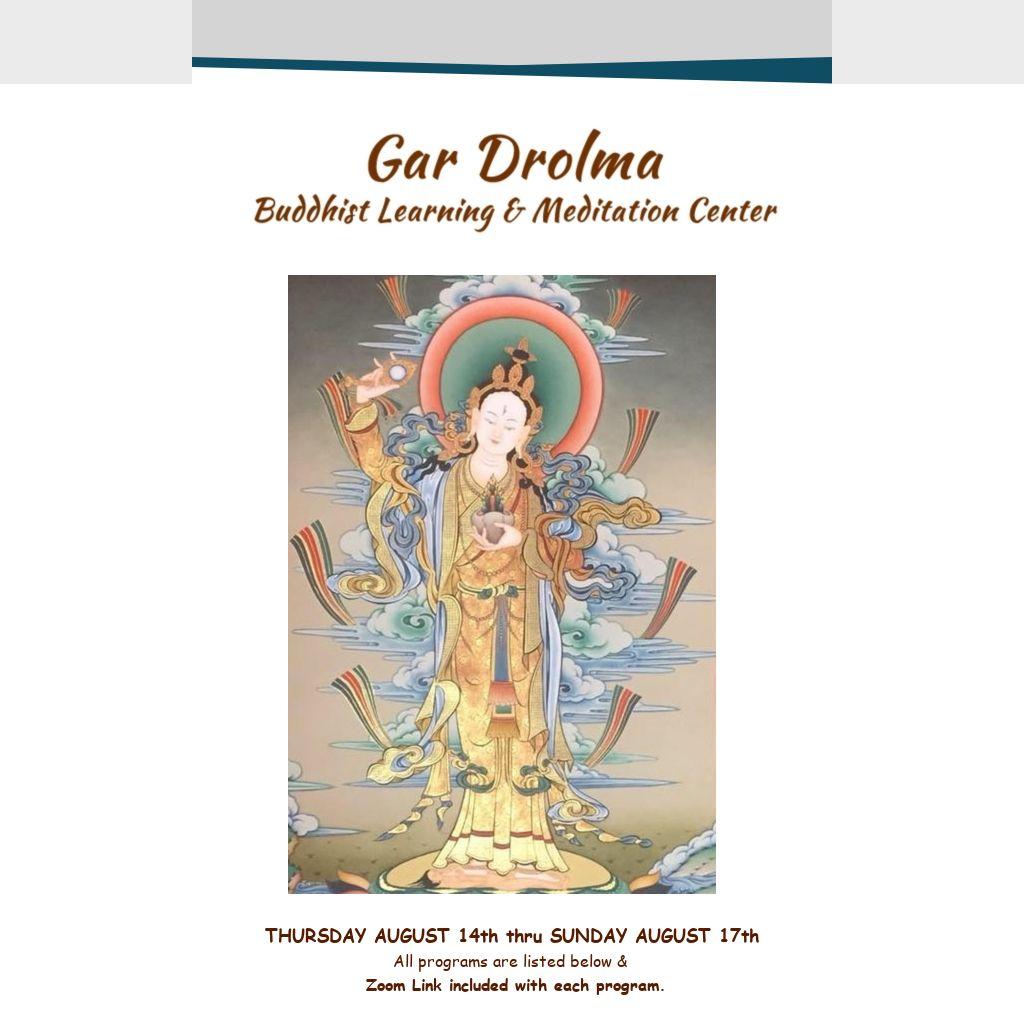 Virtual meditation, daily prayers and deity practice including Achi Chokyi Drolma, Achi Smoke Offering and Parnashavari.