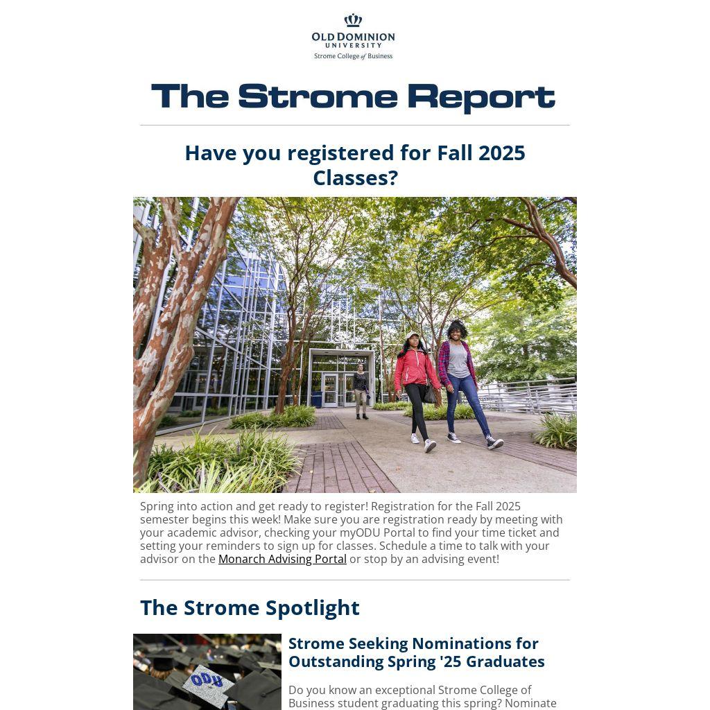 Do you know an exceptional Strome College of Business student graduating this spring? Nominate them today for a chance to see their story on ODU's news page, social media and more!