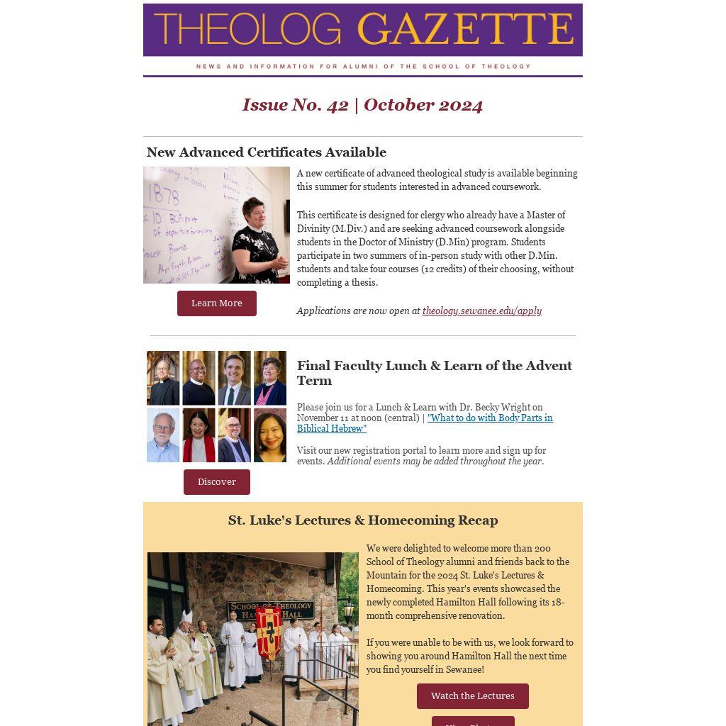A new certificate of advanced theological study is available beginning this summer for students interested in advanced coursework.
