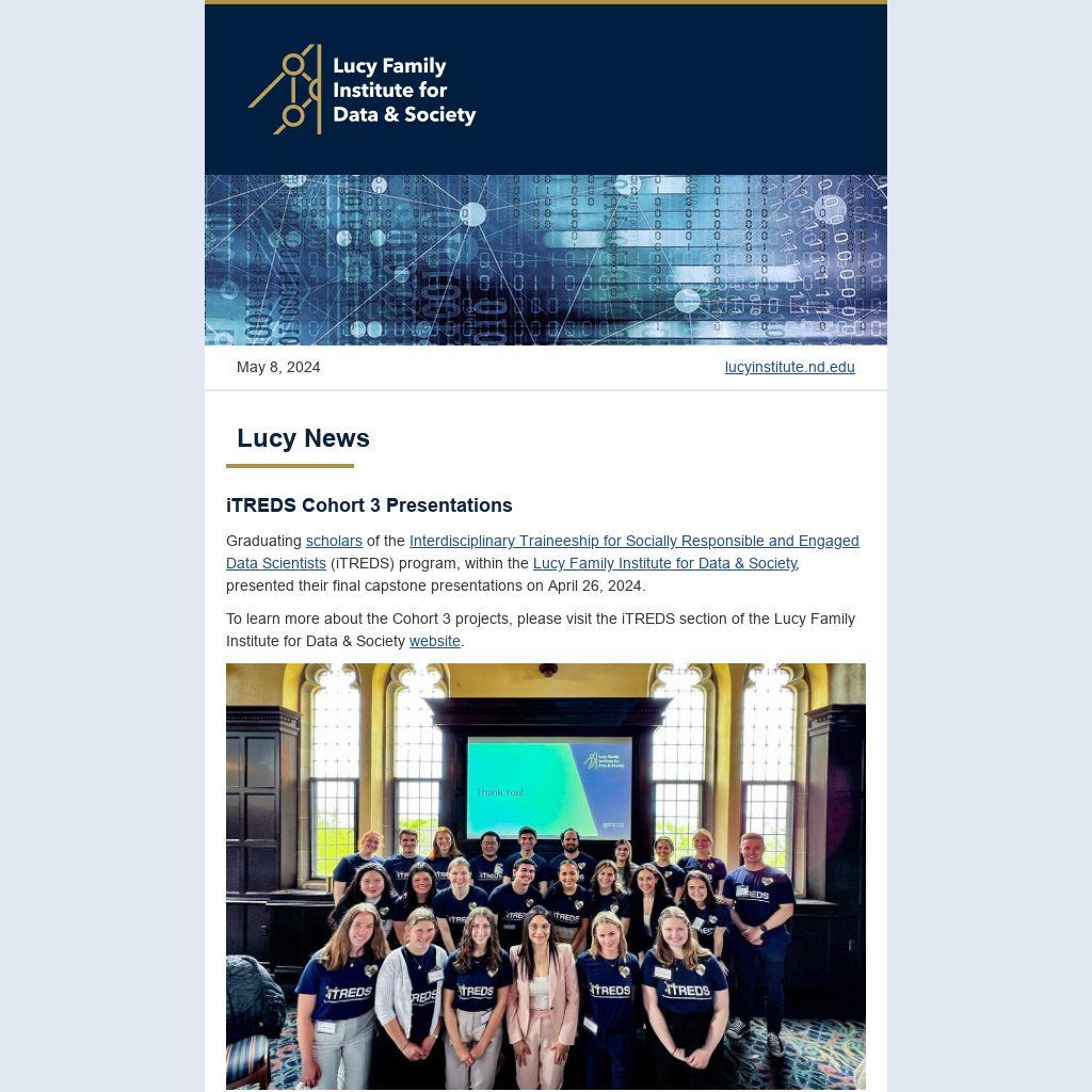 To learn more about the Cohort 3 projects, please visit the iTREDS section of the Lucy Family Institute for Data & Society website.