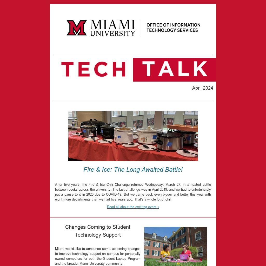 After five years, the Fire & Ice Chili Challenge returned Wednesday, March 27, in a heated battle between cooks across the university. The last challenge was in April 2019, and we had to unfortunately put a pause to it in 2020 due to COVID-19. But we came back even bigger and better this year with eight more departments than we had five years ago. That's a whole lot of chili!