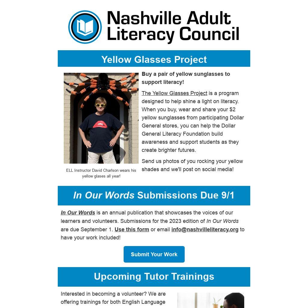 Buy a pair of yellow sunglasses to support literacy!