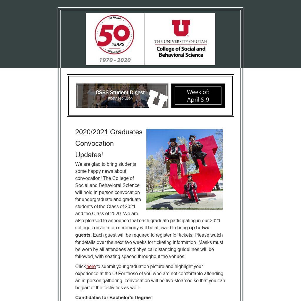 Both graduate and undergraduate students in the college will be given the opportunity to showcase original research projects using virtual poster presentations. Students, faculty, and the University of Utah community are encouraged to attend.