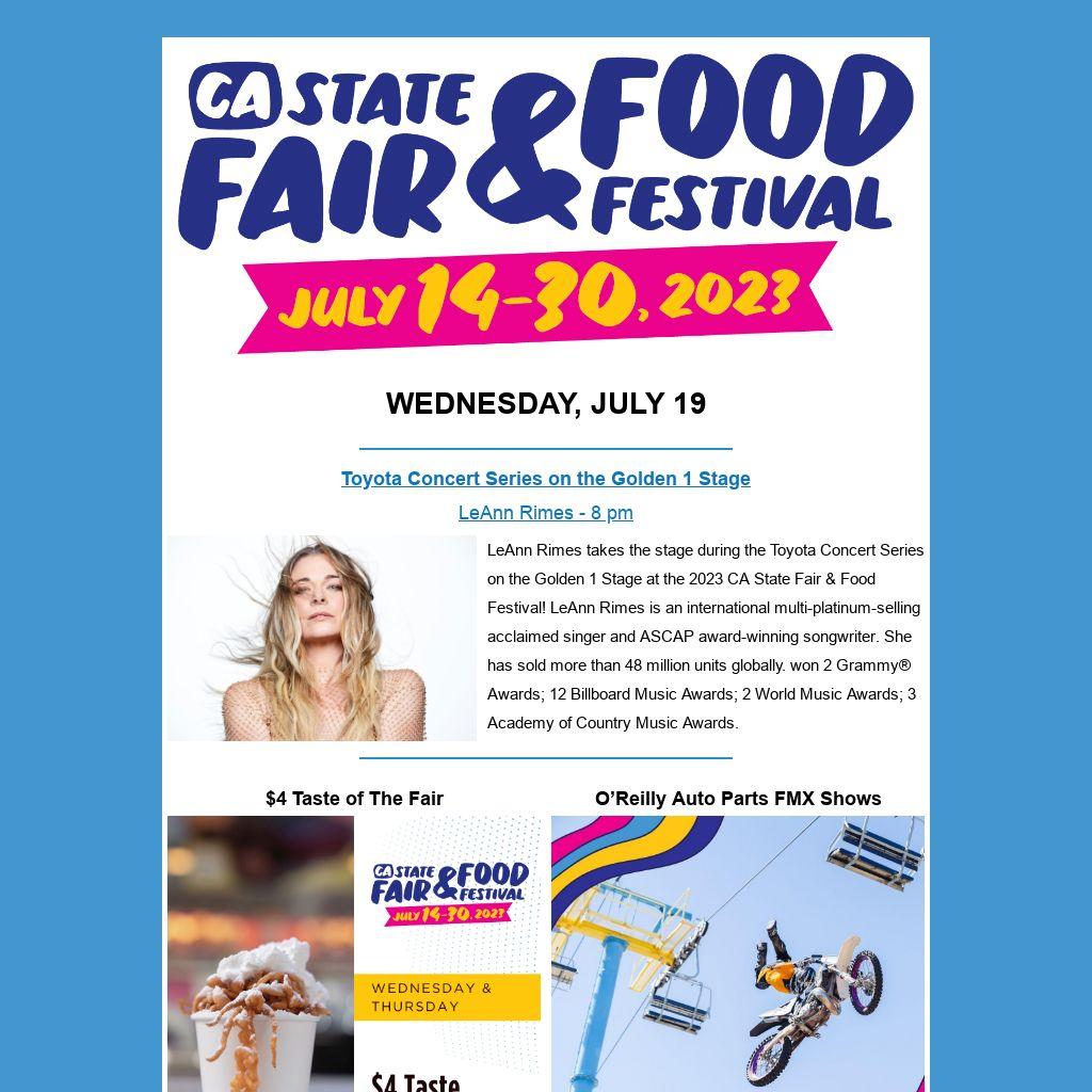 LeAnn Rimes takes the stage during the Toyota Concert Series on the Golden 1 Stage at the 2023 CA State Fair & Food Festival! LeAnn Rimes is an international multi-platinum-selling acclaimed singer and ASCAP award-winning songwriter. She has sold more than 48 million units globally. won 2 Grammy® Awards; 12 Billboard Music Awards; 2 World Music Awards; 3 Academy of Country Music Awards.