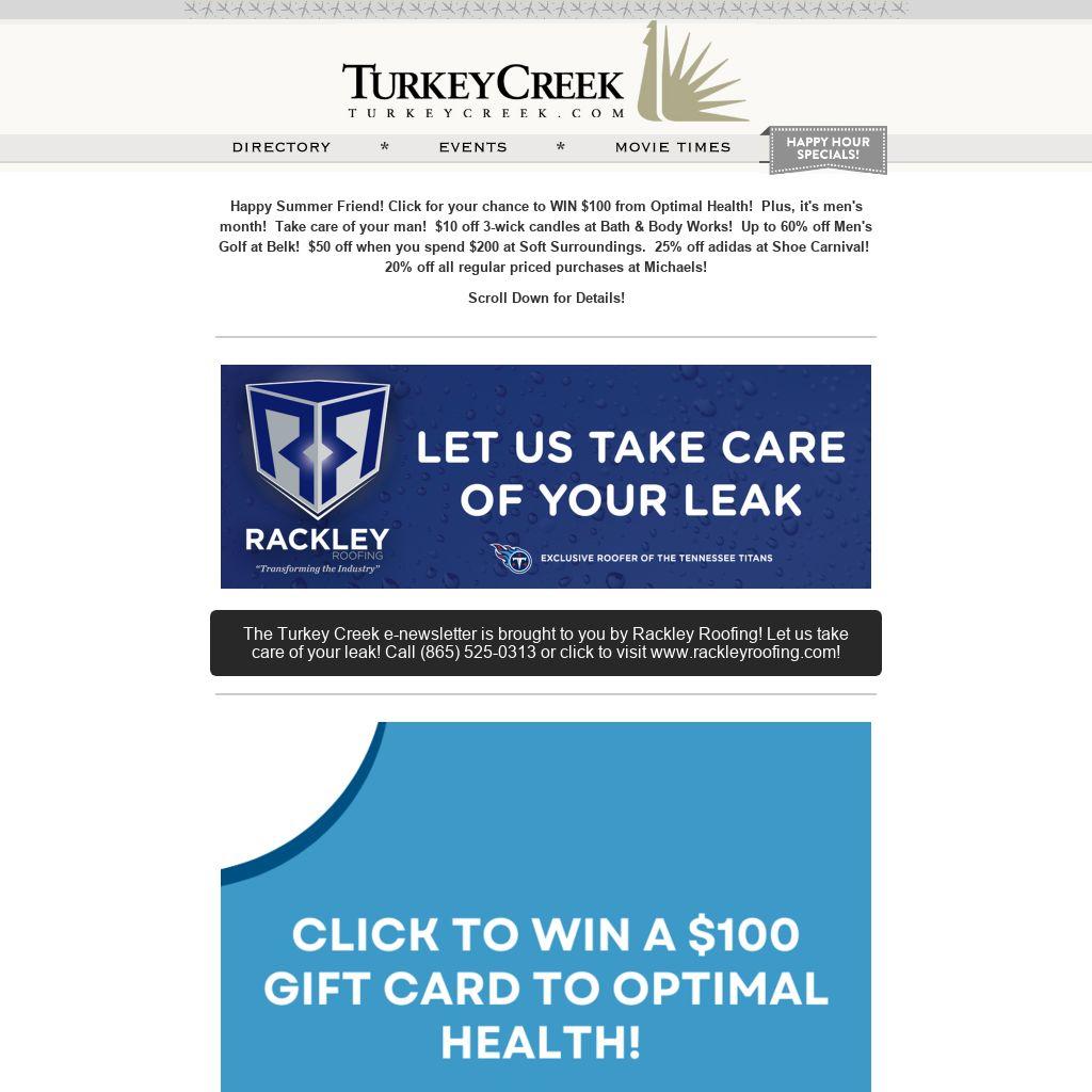 Happy Summer Friend! Click for your chance to WIN $100 from Optimal Health! Plus, it's men's month! Take care of your man! $10 off 3-wick candles at Bath & Body Works! Up to 60% off Men's Golf at Belk! $50 off when you spend $200 at Soft Surroundings. 25% off adidas at Shoe Carnival! 20% off all regular priced purchases at Michaels!