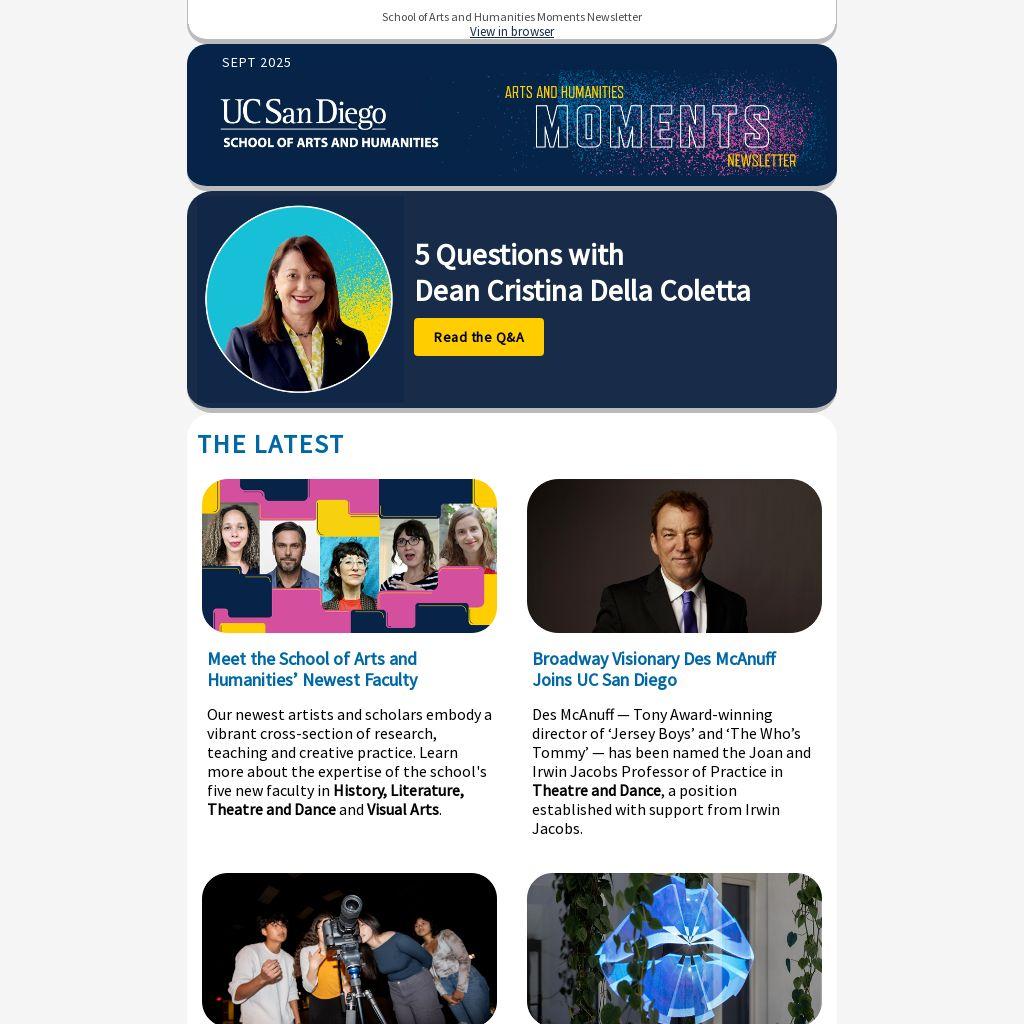 School of Arts and Humanities Moments Newsletter
