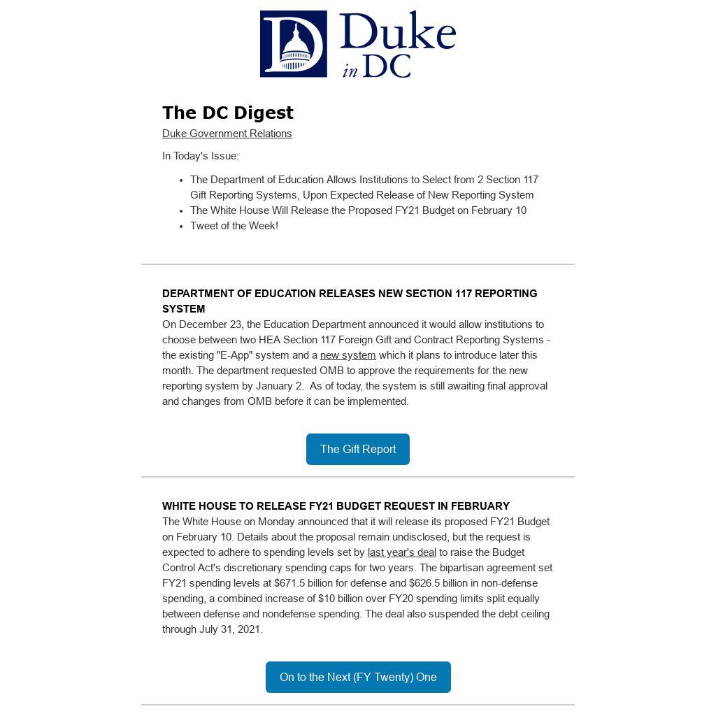- The Department of Education Allows Institutions to Select from 2 Section 117 Gift Reporting Systems, Upon Expected Release of New Reporting System