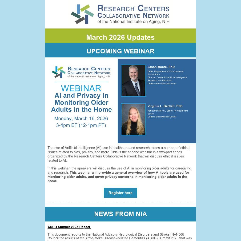 Interested in learning more about any of the NIA centers programs? Looking for more detailed information on pilot funding, webinars, resources and more? Visit the websites below. |
