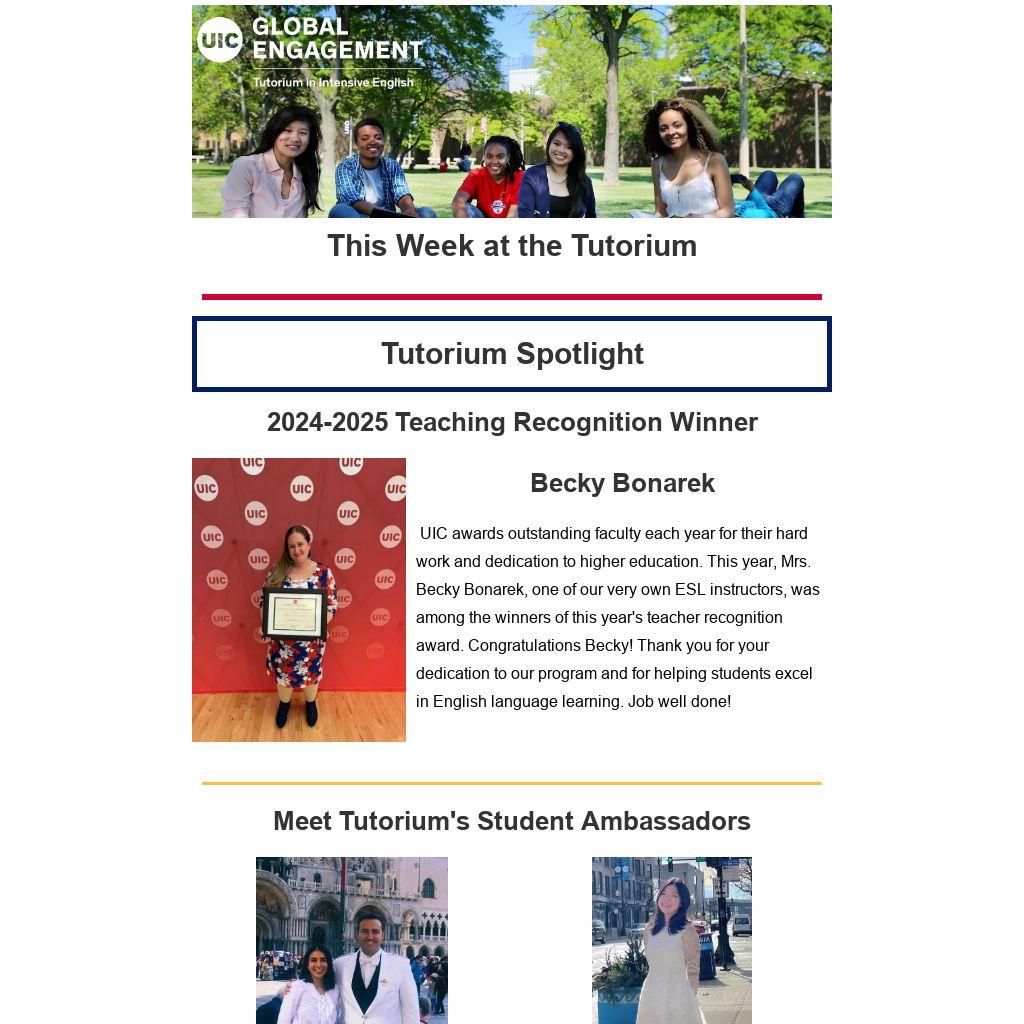 The newsletter editorial team is looking for students like you to write for the Tutorium newsletter. If you are interested, fill out this google form or you can email Mrs. Nora to let her know (ntatina@uic.edu).