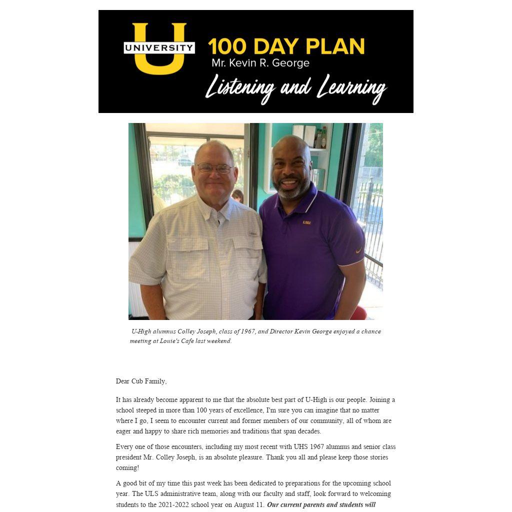 It has already become apparent to me that the absolute best part of U-High is our people. Joining a school steeped in more than 100 years of excellence, I'm sure you can imagine that no matter where I go, I seem to encounter current and former members of our community, all of whom are eager and happy to share rich memories and traditions that span decades.