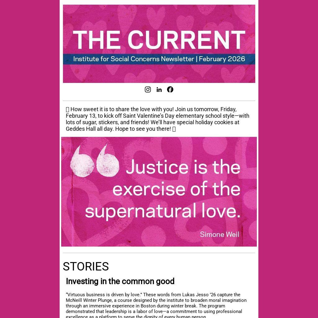 “Virtuous business is driven by love.” These words from Lukas Jesso ’26 capture the McNeill Winter Plunge, a course designed by the institute to broaden moral imagination through an immersive experience in Boston during winter break. The program demonstrated that leadership is a labor of love—a commitment to using professional excellence as a platform to serve the dignity of every human person.Â