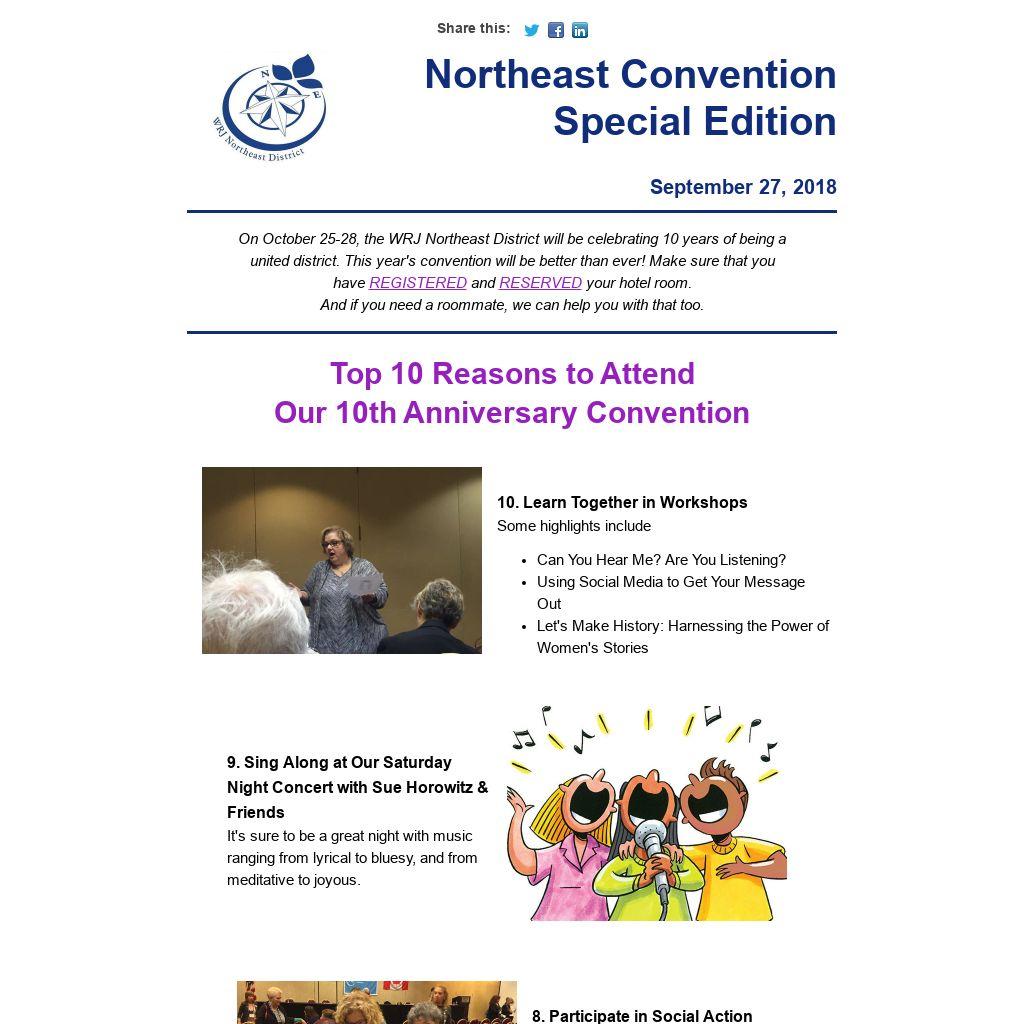 On October 25-28, the WRJ Northeast District will be celebrating 10 years of being a united district. This year's convention will be better than ever! Make sure that you have REGISTEREDand RESERVED your hotel room.
