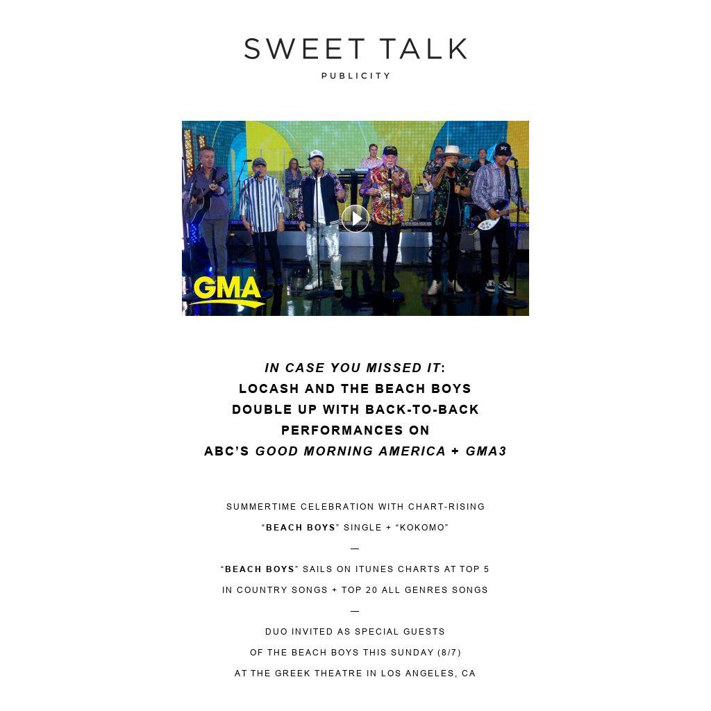 IN CASE YOU MISSED IT: LOCASH AND THE BEACH BOYS DOUBLE UP WITH BACK-TO-BACK PERFORMANCES ON ABC’S GOOD MORNING AMERICA + GMA3
