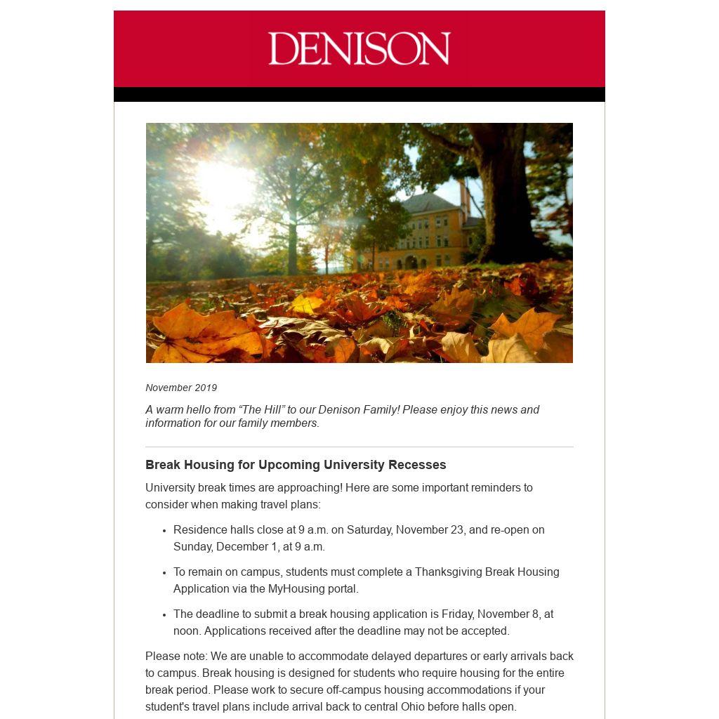 A warm hello from “The Hill” to our Denison Family! Please enjoy this news and information for our family members.