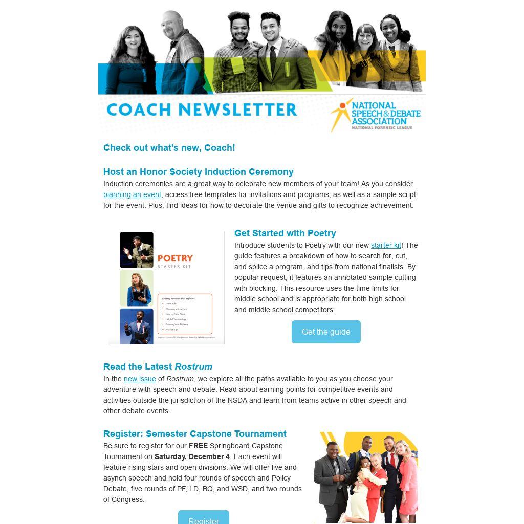 Be sure to register for our FREE Springboard Capstone Tournament on Saturday, December 4. Each event will feature rising stars and open divisions. We will offer live and asynch speech and hold four rounds of speech and Policy Debate, five rounds of PF, LD, BQ, and WSD, and two rounds of Congress.