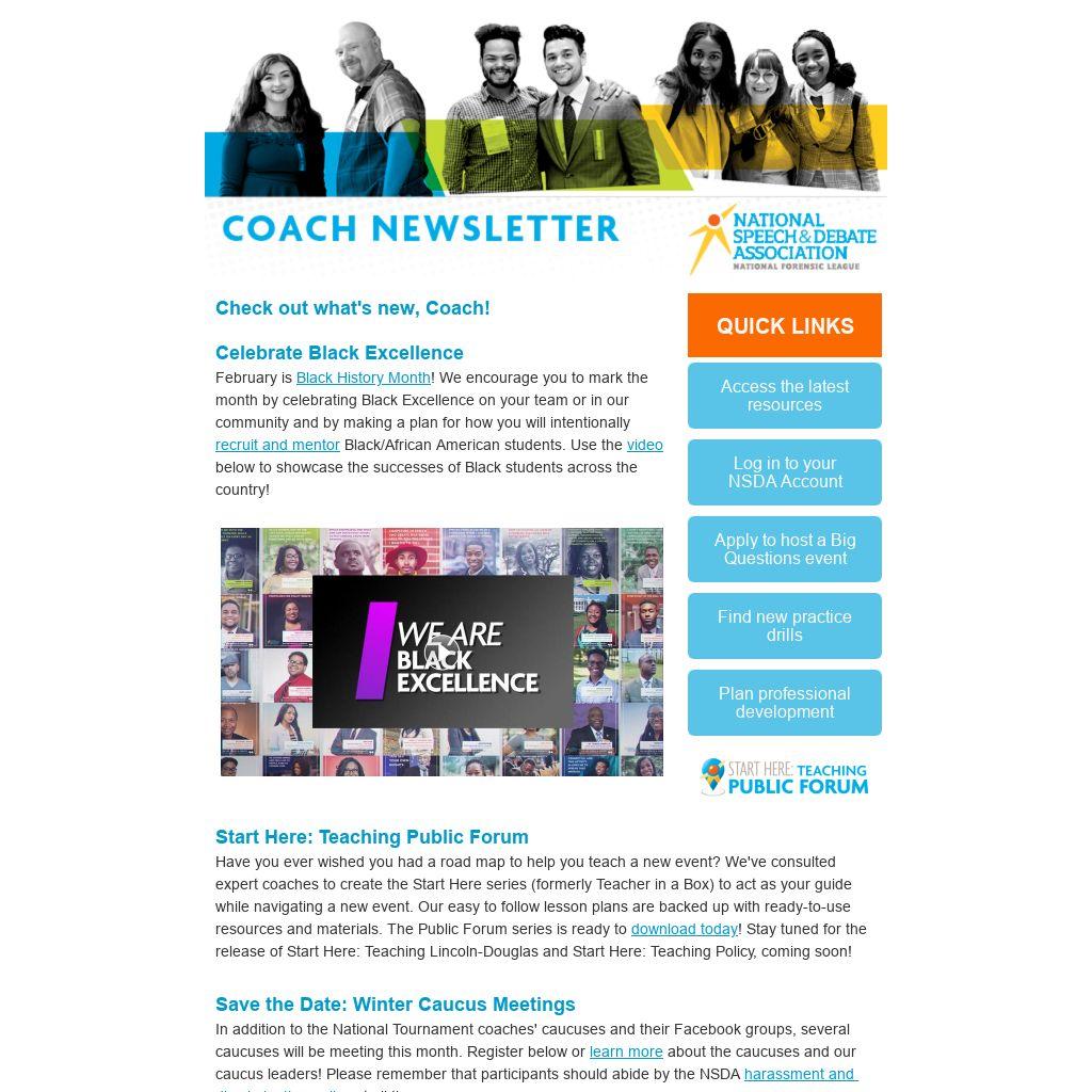 - Register for the Black/African American Coaches' Caucus on Thursday, February 11, at 7:00 p.m. CT, or join their Facebook group.