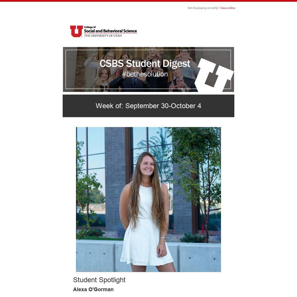 Meet Alexa O'Gorman, psychology major and Solutions Scholar! “I come from a tiny town in Washington called White Salmon. I chose Utah for many reasons, one of them being all of the outdoor adventures this state has available. I am an avid skier, backpacker, mt biker, and rock climber. I also love to travel. My junior year of high school I took a trip to Europe and ended up staying for four and a half months, traveling to 17 different countries. I have been blessed with a lifetime of opportunity and culture and I am excited to see where the journey of life takes me next.
