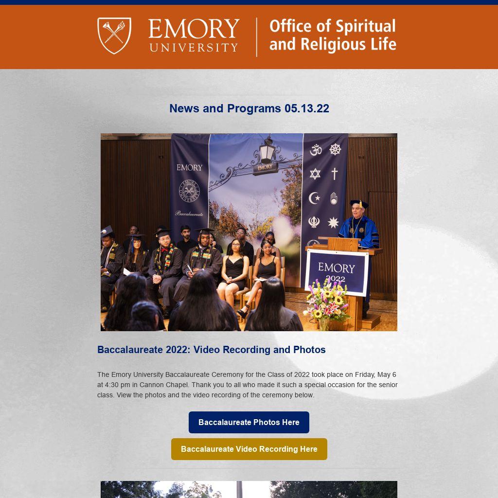 Emory OSRL ENews is published weekly during term by the Emory University Office of Spiritual and Religious Life publicizing Atlanta-campus spiritual life programs. It is not a comprehensive listing. For Oxford College spiritual life, please click here. To submit information or to update your preferences, please contact religiouslife@emory.edu.
