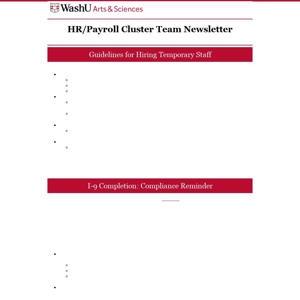 HR/Payroll Cluster Team Newsletter