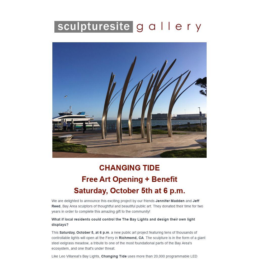 What: Lighting Ceremony and Benefit for Changing Tide, a new interactive public art sculpture.