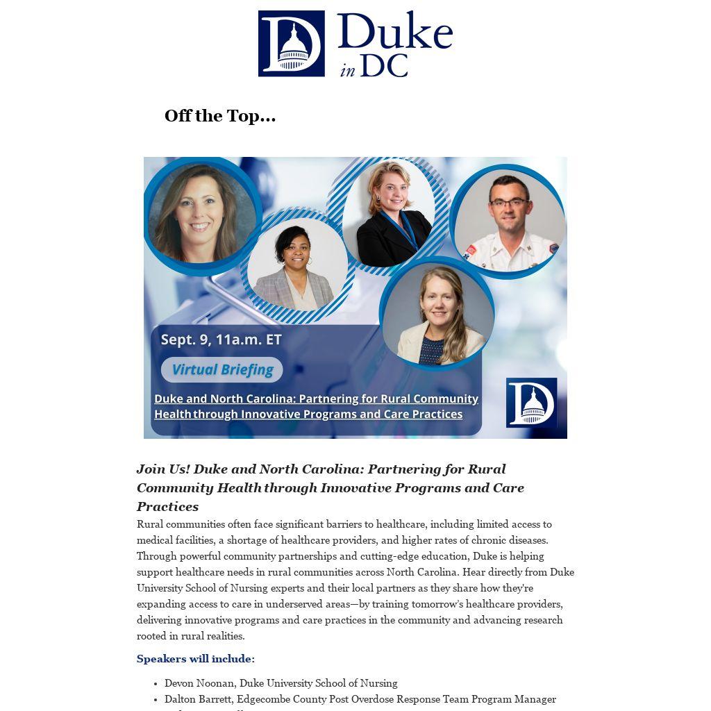 Join Us! Duke and North Carolina: Partnering for Rural Community Health through Innovative Programs and Care Practices