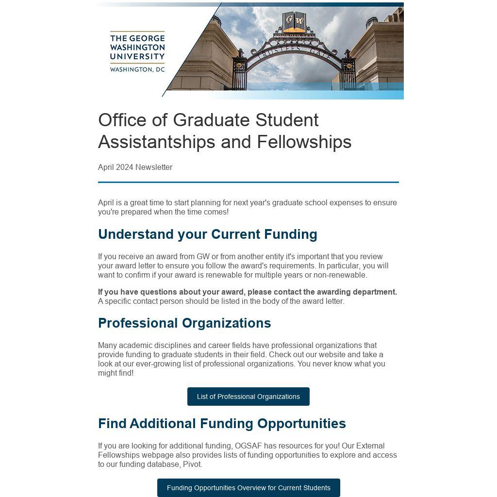 The Office of Graduate Student Assistantships and Fellowships serves as a resource for graduate students looking for funding opportunities at the George Washington University.