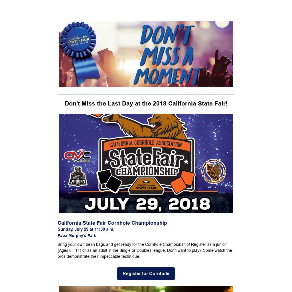 The last day of live horse racing is here! See one of the oldest sports in the country right here at the California State Fair. First post time begins at 2:15 p.m. Stop by early and learn how to place your bets, or get cool prizes at the Spin-To-Win wheel!