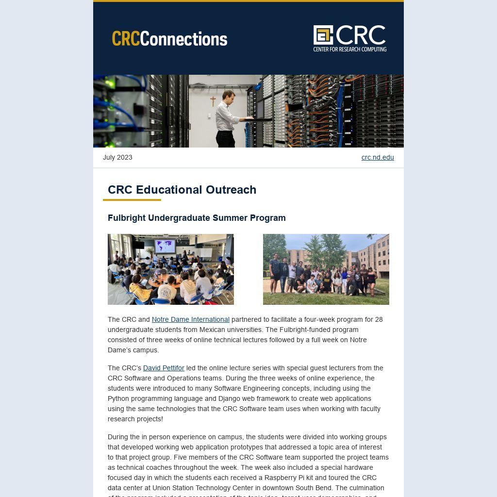 The CRC recruits and mentors paid undergraduate and graduate internships on a rolling basis. If you have interests to join our research team please contact us at crcsupport@nd.edu.