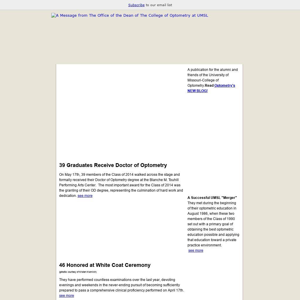 On May 17th, 39 members of the Class of 2014 walked across the stage and formally received their Doctor of Optometry degree at the Blanche M. Touhill Performing Arts Center. The most important award for the Class of 2014 was the granting of their OD degree, representing the culmination of hard work and dedication