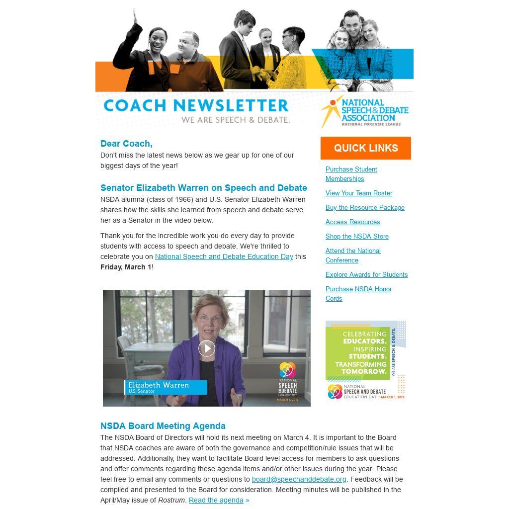 NSDA alumna (class of 1966) and U.S. Senator Elizabeth Warren shares how the skills she learned from speech and debate serve her as a Senator in the video below.