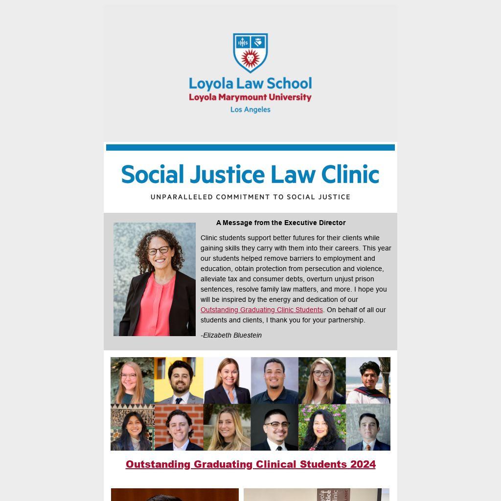 Clinic students support better futures for their clients while gaining skills they carry with them into their careers. This year our students helped remove barriers to employment and education, obtain protection from persecution and violence, alleviate tax and consumer debts, overturn unjust prison sentences, resolve family law matters, and more. I hope you will be inspired by the energy and dedication of our Outstanding Graduating Clinic Students. On behalf of all our students and clients, I thank you for your partnership.