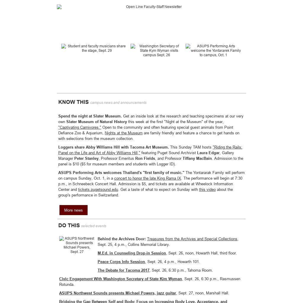 Spend the night at Slater Museum. Get an inside look at the research and teaching specimens at our very own Slater Museum of Natural History this week at the first "Night at the Museum" of the year, "Captivating Carnivores." Open to the community and often featuring special guest animals from Point Defiance Zoo & Aquarium, Nights at the Museum are family friendly and feature a chance to get hands on with selections from the museum collection.