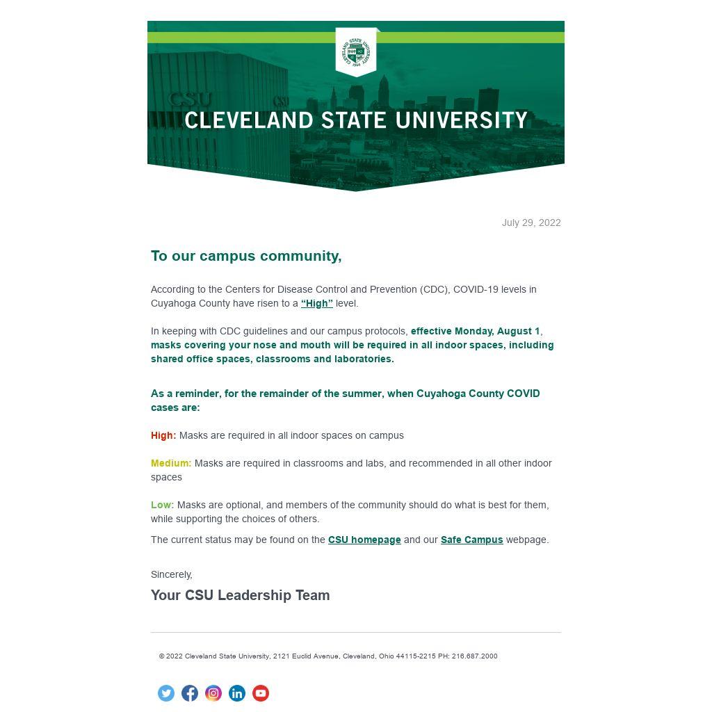 As a reminder, for the remainder of the summer, when Cuyahoga County COVID cases are:
