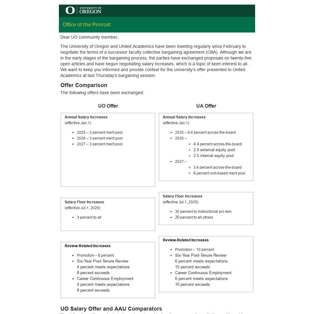 UO Salary Offer and AAU Comparators